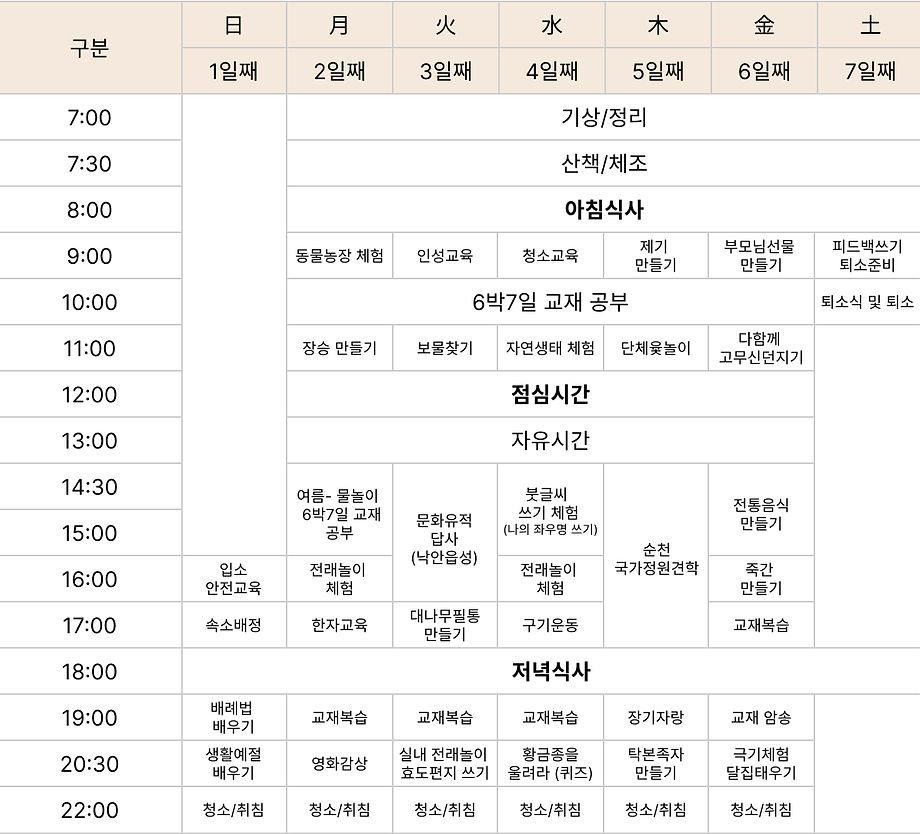 6박 7일 프로그램 [여름 방학중]